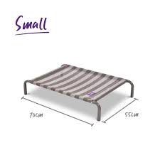 This stylish grey and white striped outdoor raised dog bed is the height of comfort. Made with a hand-finished, super strong steel frame and quality double-woven fabric, this waterproof bed raises the steaks (sorry, I mean stakes,) in comfort, durability and style.