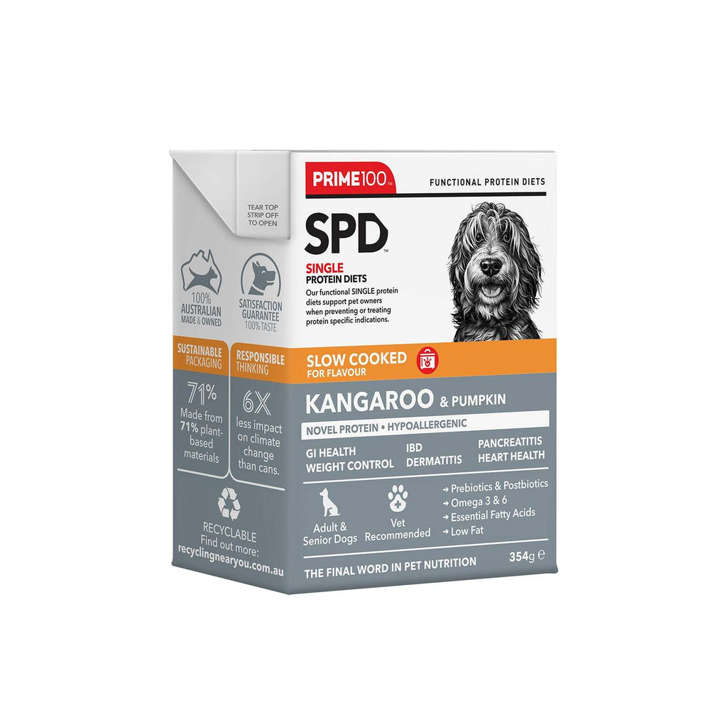 Prime100 SPD Slow Cooked Kangaroo & Pumpkin is a novel, hypoallergenic, single protein diet created for dogs with suspected food sensitivities, skin allergies or digestive issues. A complete and balanced, low-fat diet formulated for adult and senior dogs with acute gastrointestinal indications such as pancreatitis or IBD. Added pumpkin is a rich source of fibre and supports digestive health.